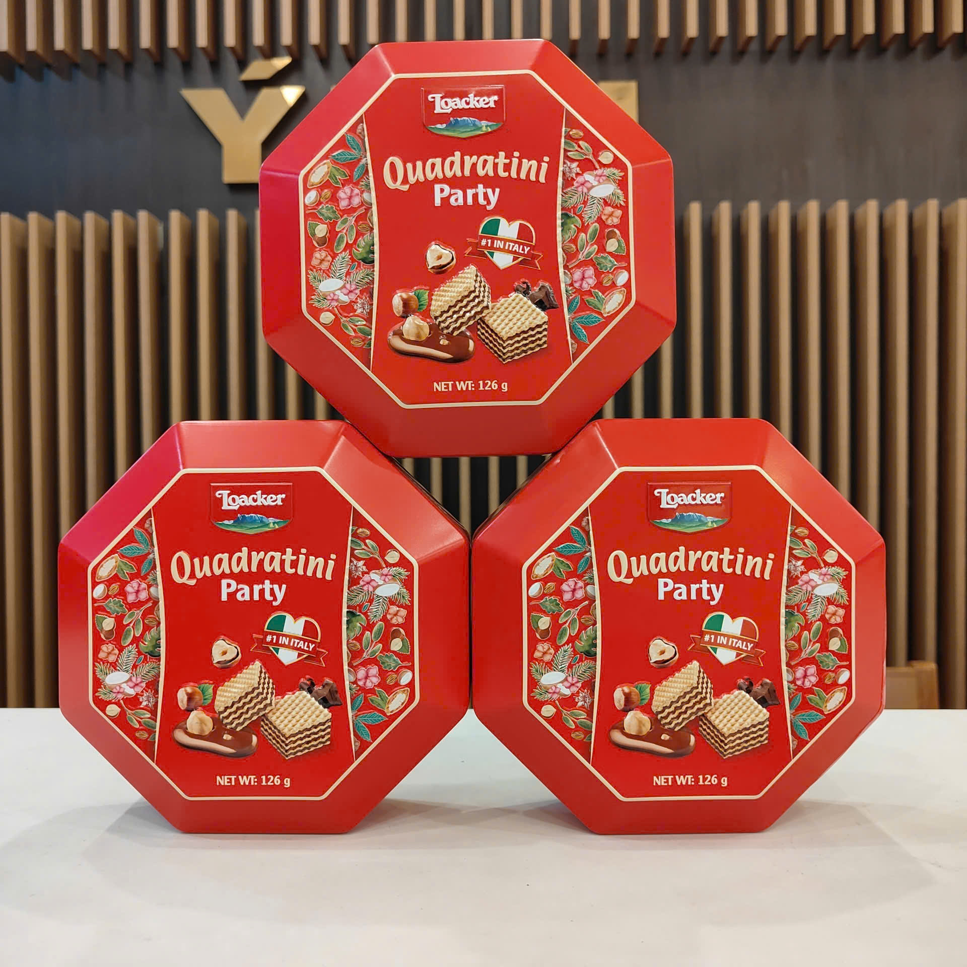 Thiết kế hộp tiện lợi, nhỏ gọn, Loacker Quadratini Party là lựa chọn hoàn hảo cho các bữa tiệc, buổi gặp gỡ bạn bè, hoặc làm quà tặng ý nghĩa. Hương vị thơm ngon đa dạng như vani, socola, và hạt phỉ chắc chắn sẽ làm hài lòng mọi tín đồ yêu thích bánh quy.